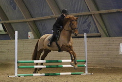 ![]() Kouluratsastuksen hallimestaruuksien kultamitalistit 2022 ponit, Moona Miettinen ja Black Youp.  |